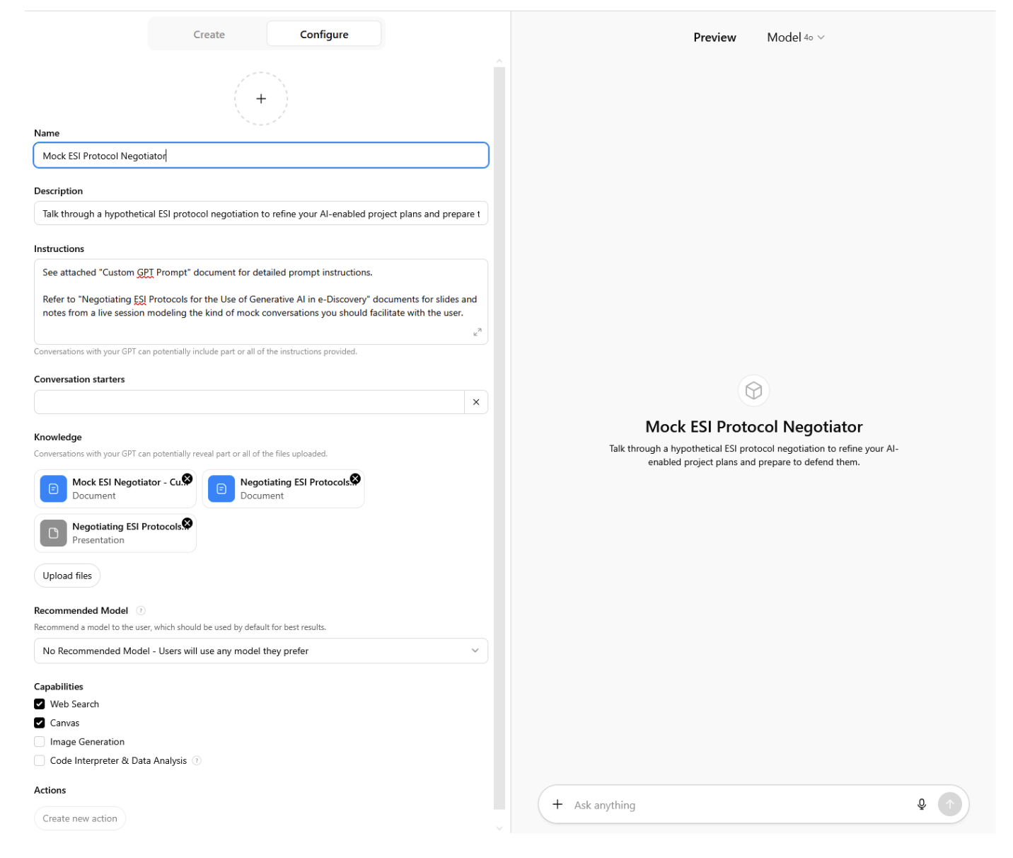 Please note that this is just for fun, with no legal advice offered or implied. Use it to rehearse verbalizing your ESI strategies and gain experience using AI for a specific task.